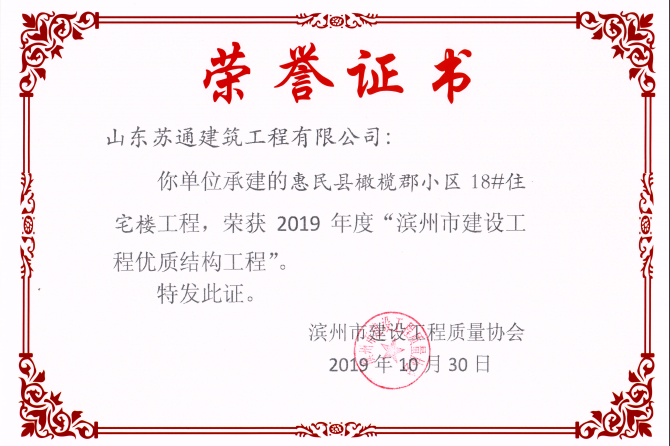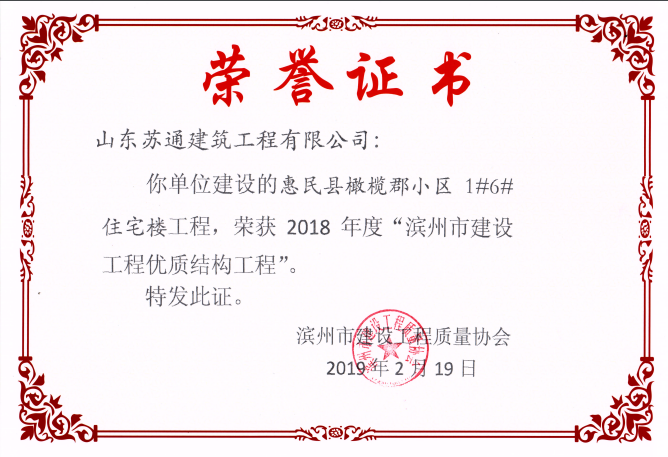 山東蘇通建筑工程有限公司,創(chuàng)建于2009年8月。目前擁有房屋建筑工程施工總承包壹級、市政公用工程施工總承包叁級、水利水電工程施工總承包叁級資質(zhì),同時還具有建筑裝修裝飾工程專業(yè)承包貳級、消防設施工程專業(yè)承包貳級、鋼結構工程專業(yè)承包叁級、建筑機電安裝工程專業(yè)承包叁級等專業(yè)承包資質(zhì)。 公司總部坐落于山東省濱州市濱城區(qū)黃河十二路877號,現(xiàn)有辦公面積約2000平方米,機構設黨支部工會辦公室、總經(jīng)理辦公室、綜合辦公室、工程管理部、經(jīng)營預算部、資產(chǎn)財務部、材料設備部、運行管理部、法律事務部等多個職能部門。公司管理體系已經(jīng)通過了GB/T 19001及GB/T 50430質(zhì)量管理體系、GB/T 24001環(huán)境管理體系(EMS)、GB/T 28001職業(yè)健康安全管理體系(OHSMS)等體系的認證。 公司承建完工了濱州市建大教師之家、建大清怡苑、香格里拉水岸綠城住宅小區(qū)、雙泰建大城、曲阜崇德公館住宅小區(qū)、北海新區(qū)御景藍灣住宅小區(qū)、沾化德榮國際華城住宅小區(qū)、惠民橄欖郡住宅小區(qū)等工程項目,目前在建工程項目有:濱州市頤高國際電子商務產(chǎn)業(yè)園住宅小區(qū)項目、濱州市東盛國際項目、高新區(qū)建大中央華府住宅小區(qū)項目、濱州市融匯新里程住宅小區(qū)項目、濱州市建大秦皇壹號住宅小區(qū)項目、濱州市森林花...